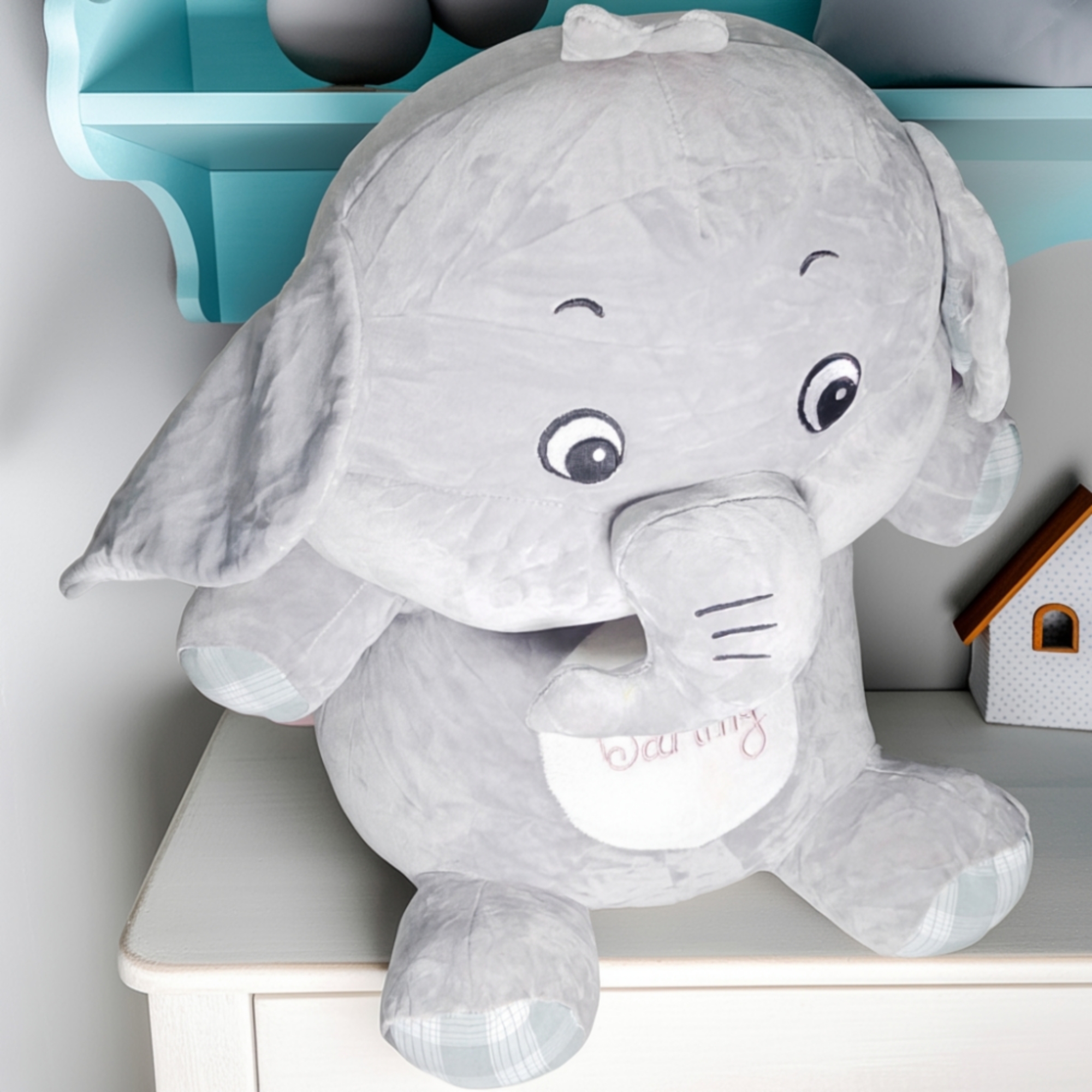 Its cute design, long trunk, and big ears make it a favorite for children, while also serving as a charming décor piece for bedrooms, nurseries, or living rooms. Ideal for gifting on birthdays, baby showers, or special occasions.